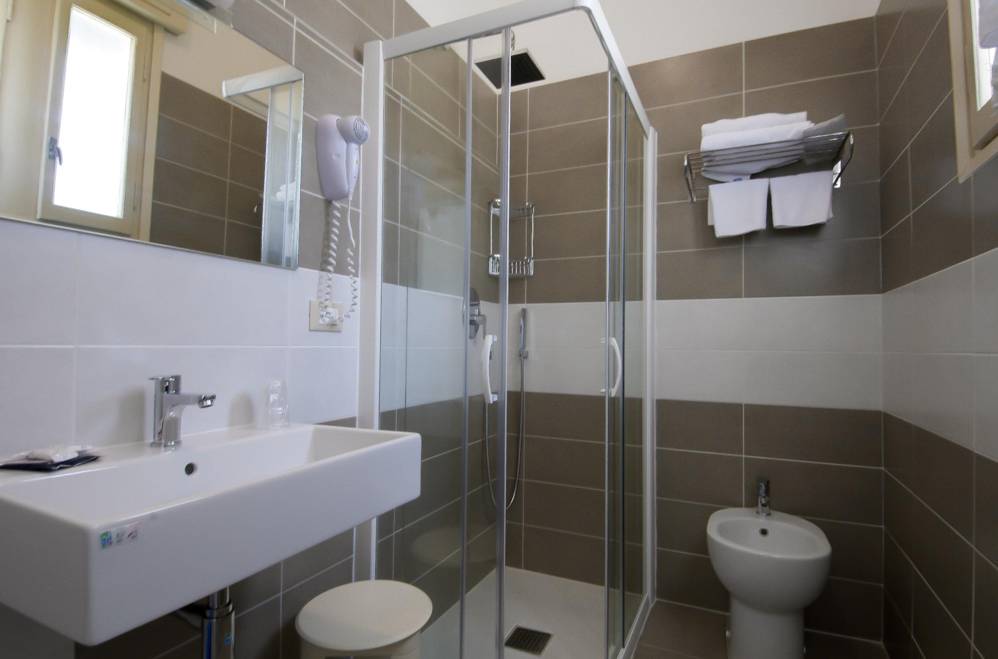 Al loro interno il bagno privato è provvisto di doccia con box, biancheria, asciugacapelli e prodotti di cortesia.